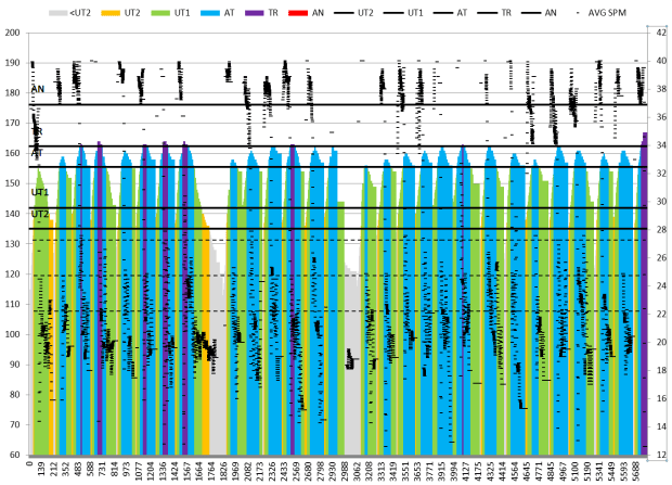 Workout Summary - media/20180614-1735190o.csv --|Total|-Total-|--Avg--|-Avg-|Avg-|-Avg-|-Max-|-Avg --|Dist-|-Time--|-Pace--|-Pwr-|SPM-|-HR--|-HR--|-DPS --|09028|63:34.0|03:31.3|123.6|24.4|132.4|176.0|05.8 W-|03686|15:44.0|02:08.1|195.9|28.1|143.3|174.0|08.6 R-|05358|47:51.0|04:28.0|099.9|23.2|128.8|174.0|07.3 Workout Details #-|SDist|-Split-|-SPace-|-Pwr-|SPM-|AvgHR|MaxHR|DPS- 01|00895|04:13.6|02:21.7|127.9|18.9|143.7|158.0|11.2 02|00075|00:18.2|02:02.0|244.1|32.9|113.0|117.0|07.5 03|00213|00:52.8|02:04.0|211.4|29.4|121.1|131.0|08.2 04|00234|00:57.2|02:02.3|226.2|32.4|156.7|168.0|07.6 05|00129|00:29.5|01:54.1|238.4|32.6|117.6|124.0|08.1 06|00224|00:52.0|01:56.1|239.2|32.2|132.4|137.0|08.0 07|00165|00:39.4|01:59.2|215.0|33.5|158.1|161.0|07.5 08|00184|00:43.0|01:56.6|246.3|34.9|158.9|168.0|07.4 09|00070|00:16.2|01:55.7|247.0|33.3|138.2|139.0|07.8 10|00256|01:00.8|01:58.5|231.3|31.6|128.4|136.0|08.0 11|00237|01:01.9|02:10.7|185.1|30.1|135.5|143.0|07.6 12|00147|00:39.6|02:14.5|228.1|30.2|126.5|132.0|07.4 13|00207|00:54.1|02:10.7|201.7|29.9|160.6|170.0|07.7 14|00218|00:56.2|02:08.6|200.4|30.9|167.7|174.0|07.5 15|00208|00:54.0|02:09.6|219.3|31.1|164.5|172.0|07.4 16|00223|00:55.7|02:04.9|231.1|31.2|136.6|147.0|07.7