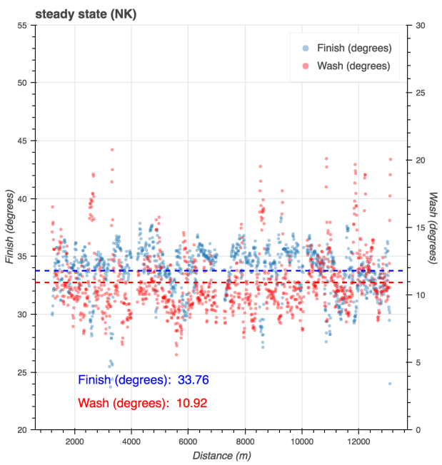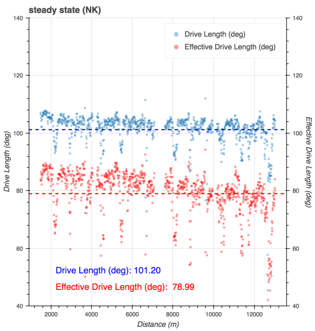 Lots of missing strokes. Which messed up the summary. But the workout was great. Very challenging at the end. By using the flex plot and suppressing all strokes below 24 spm and all strokes with a WpS below 200, I could get an idea of the interval power. Here is is shown as an avg of 320. (1:43 pace)